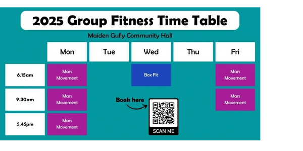 Held in the convenient and welcoming Maiden Gully Community Hall, these classes are perfect for women looking to move their bodies, improve fitness, and regain confidence.